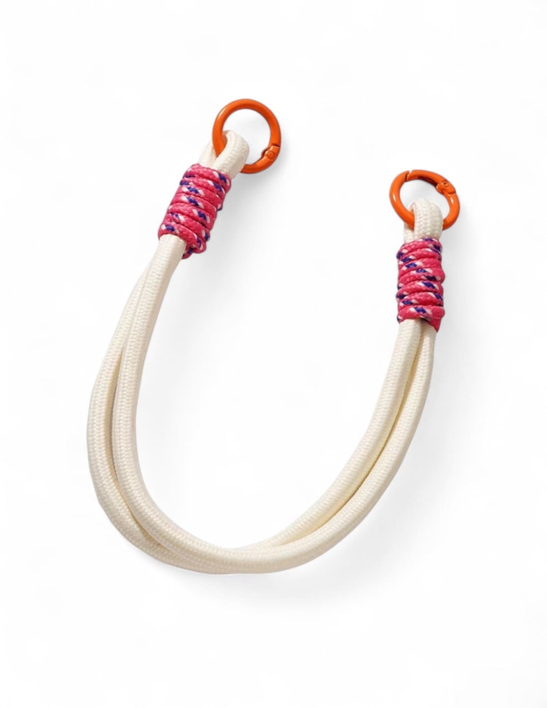 Cette anse de sac en corde tressée transforme instantanément un sac basique en accessoire stylé et unique. Son design épuré, composé de deux brins gainés réunis par un enroulement textile, évoque les codes de l’outdoor tout en restant élégant et contemporain.