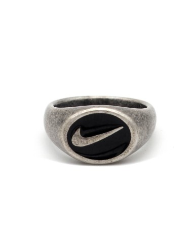 Une chevalière retro sur laquelle on retrouve le fameux Swoosh de chez Nike dans un cercle noir. L'accessoire qu'il te faut pour agrémenter tes futures tenues avec sa couleur vintage silver brossé.