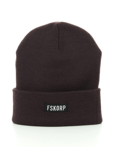 Bonnet wine box logo issu de la collection hiver 2017 Fskorp Ltd. Ce bonnet de couleur violet foncé assemblé en France possède une étiquette noire cousue sur le revers.