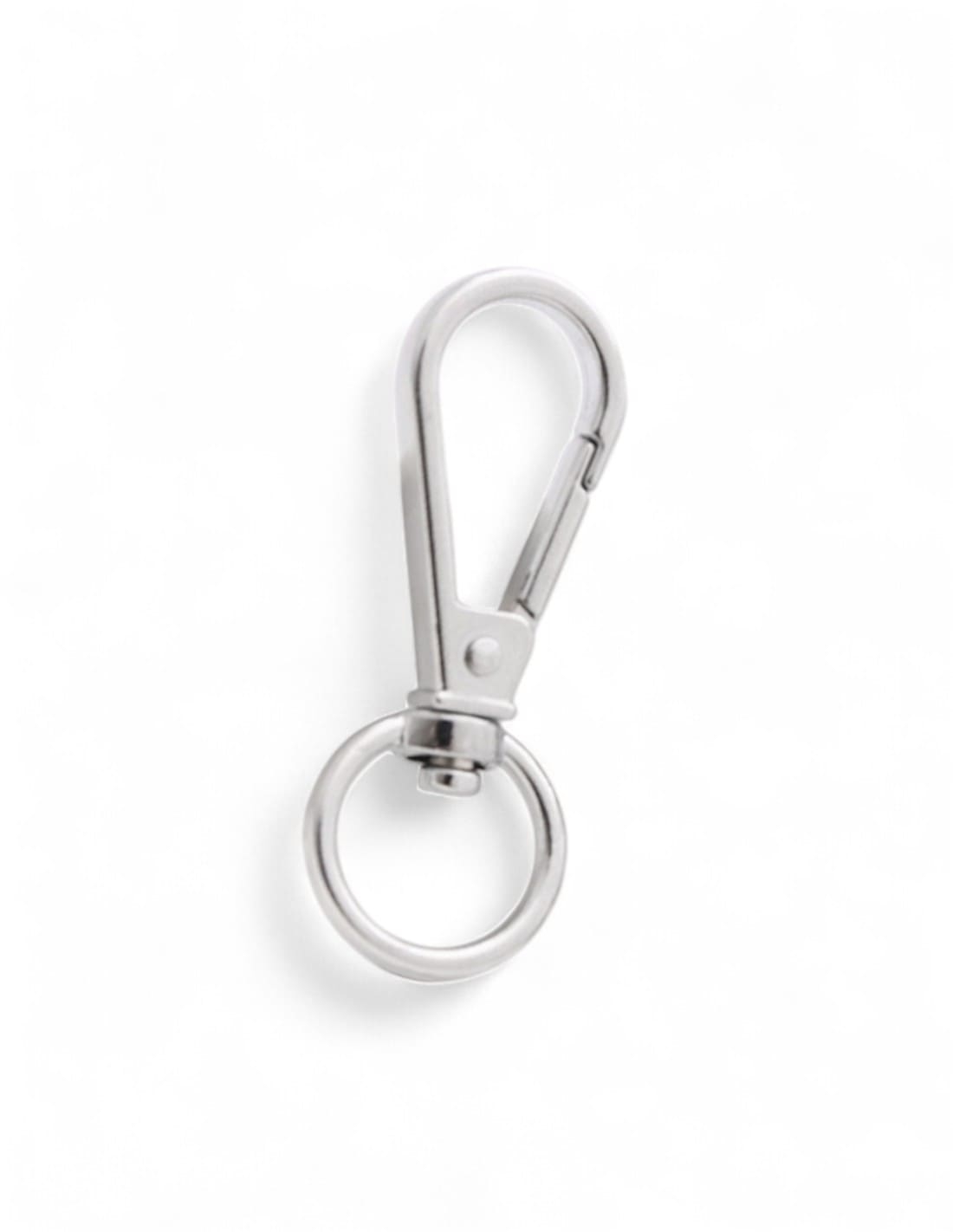 Ce mousqueton long avec anneau pivotant est idéal pour accrocher un bijou de sac, une anse ou un porte-clé. Pratique et résistant, il s’ouvre facilement grâce à son système à ressort.