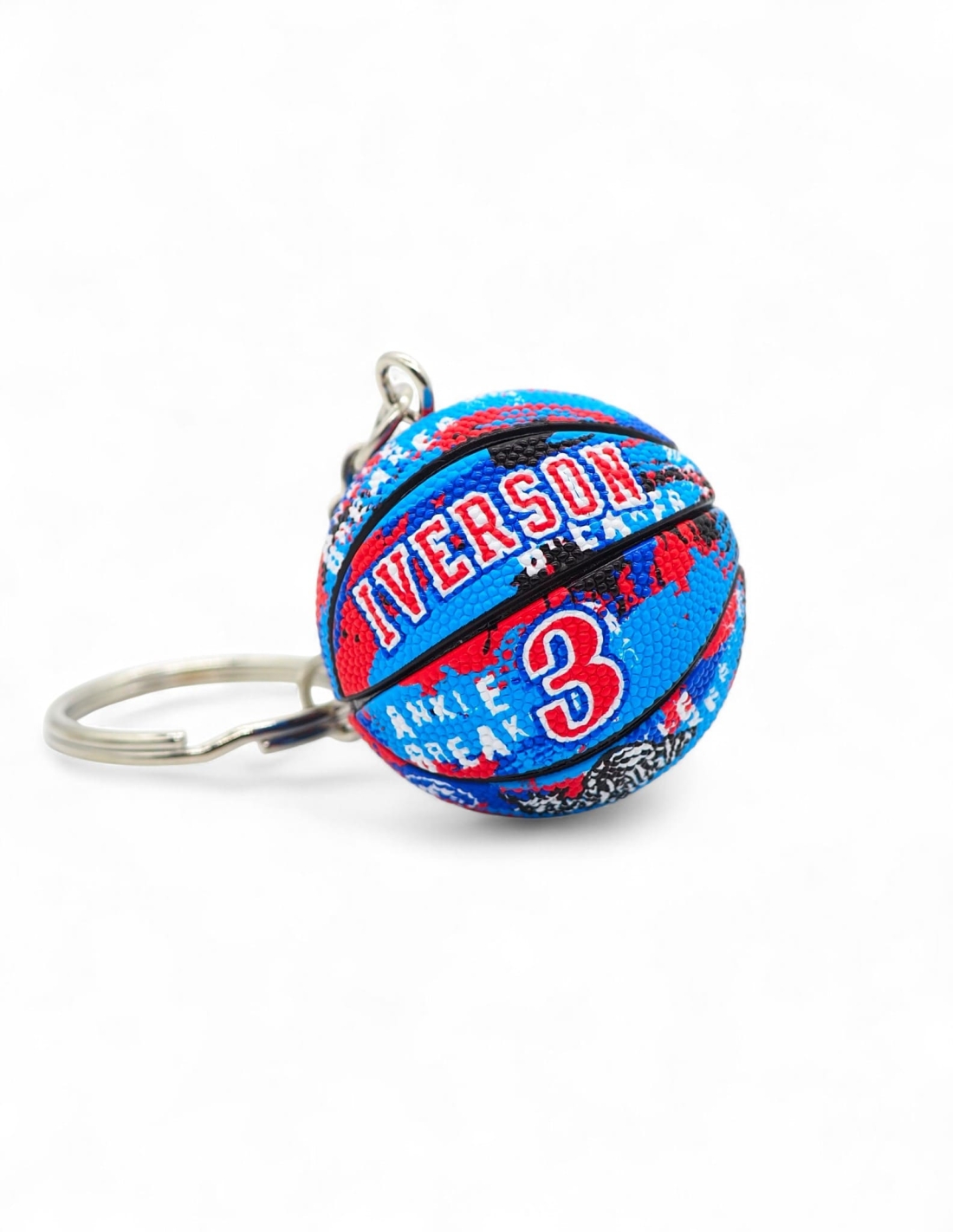 Porte-clé en forme de ballon de basket inspiré de Allen Iverson, figure emblématique de la NBA et des Philadelphia 76ers. Ce modèle au design percutant met en avant son nom "IVERSON", son numéro 3 et l’inscription "ANKLE BREAK" en clin d’œil à son style de jeu explosif.